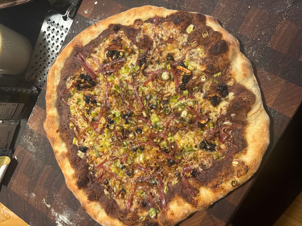 - Black bean morito coconut milk sauce White cheddar Blueberry hydrated in cucumber vinegar Red wine and pepper salami Green onions