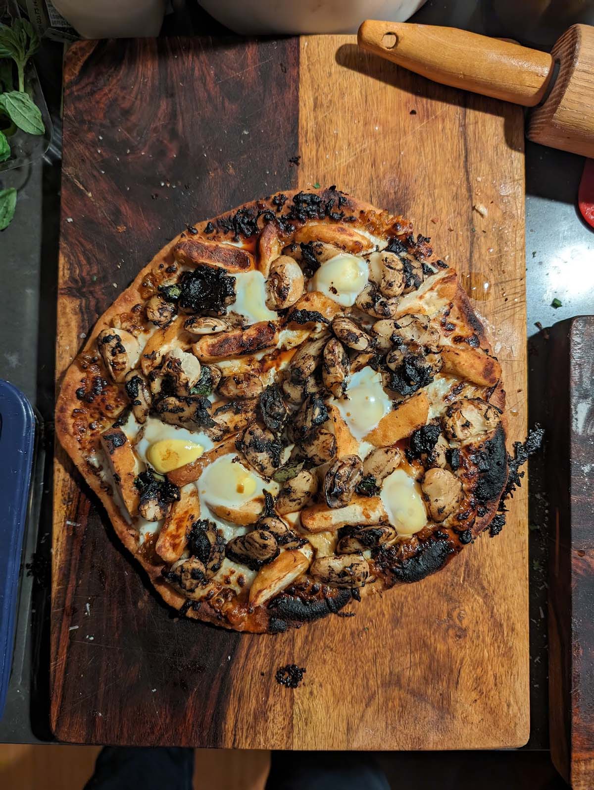 ↩ index ?? /3 Ratings Ingredients Chicken nuggets Quail eggs Black garlic PB crust Beef garum Butter beans Mozz Radicchio Lime pickle with lunchable ketchup Garum Harem Garum Harem Garum Harem Garum Harem
