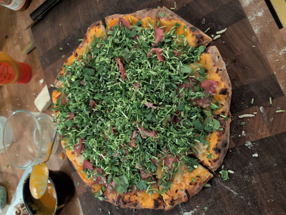 - Ramson pickle Conflict cheese Smoky pork shoulder Carrot puree Dried mango slices Iraqi mango sauce Caprisun Ham fookin' salt